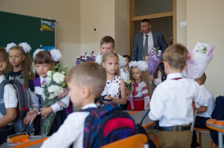 «33 тисячі першокласників цьогоріч йдуть до київських шкіл. Зокрема, і в школі номер 42, яку ми разом відкриваємо сьогодні, сядуть за парти 183 першокласники - шість класів! Це урочисте та хвилююче свято. Особливо для першачків, які сьогодні зроблять перший крок у країну знань», - зазначив Кличко.
