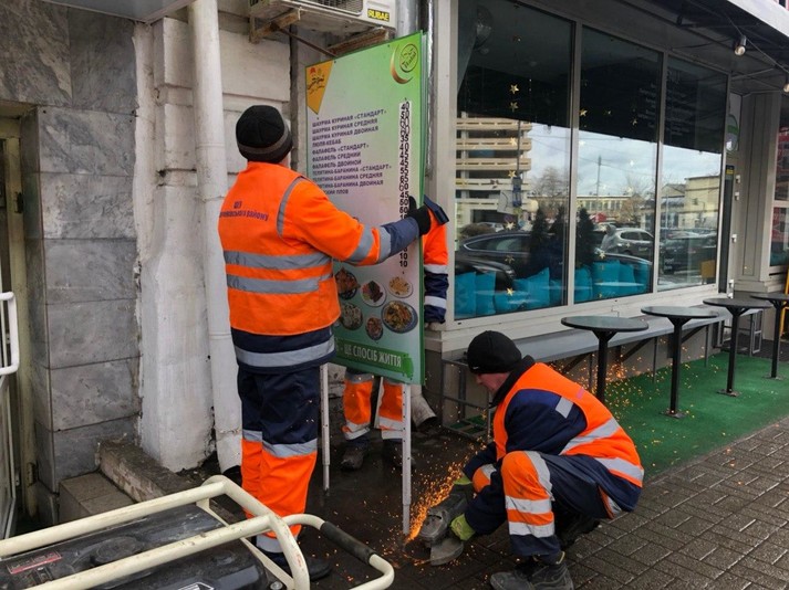 «Ми очистили від штендерів кілька кварталів поблизу площі Перемоги. Демонтували більше півсотні конструкцій. Деяка реклама була приварена до тротуарів, тому довелось використовувати інструмент для різки металу», – додав Осипов.