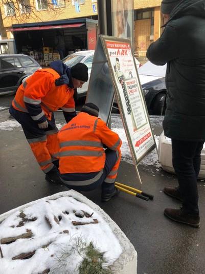 «Уже кілька місяців ми активно очищаємо тротуари від незаконної реклами. Найбільше на пішохідних зонах розміщено штендерів, які ще називають «спотикачами». Відповідно до «Правил розміщення рекламних засобів» такі конструкції – нелегальні», – повідомив заступник генерального директора Київавтодору Валентин Осипов.