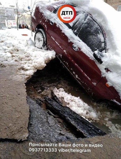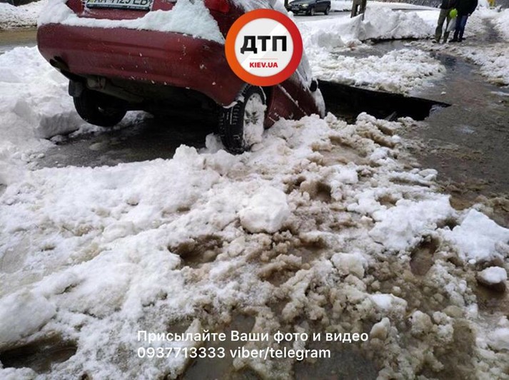 У суботу, 3 березня, на вулиці Ольжича у Шевченківському районі Києва автомобіль провалився під землю.