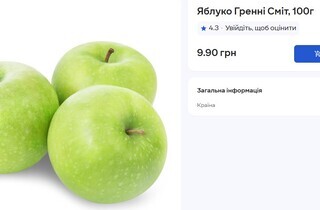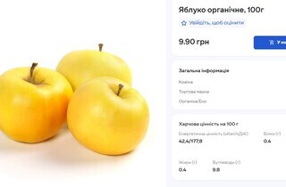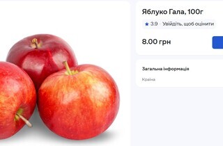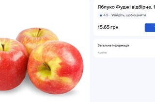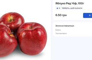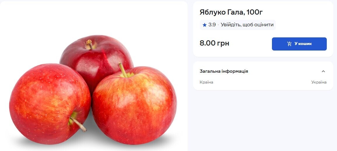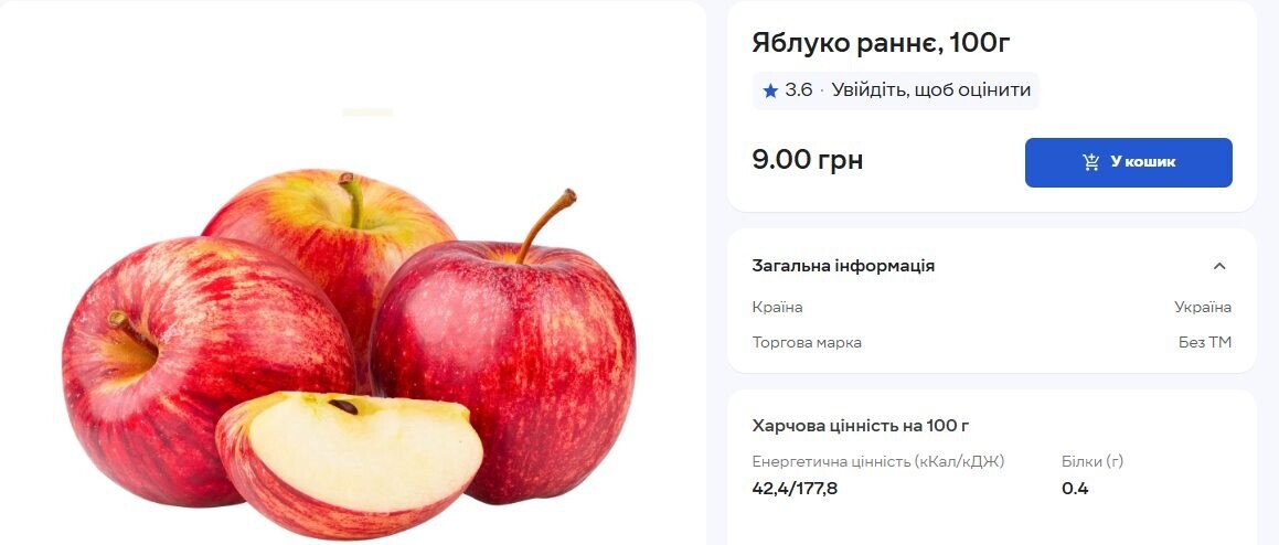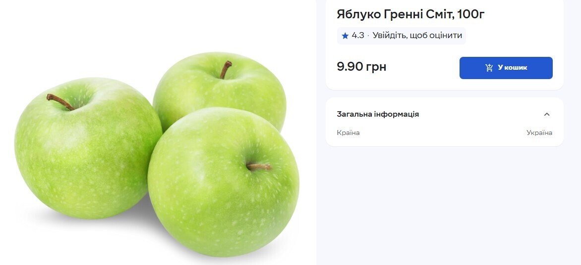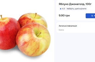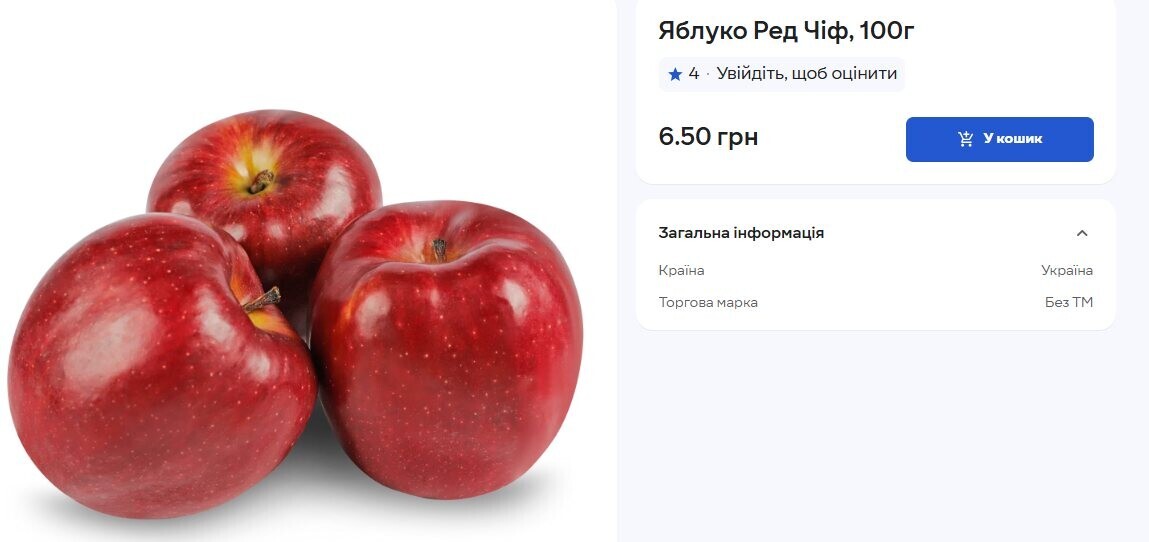 У мережі «Велмарт» яблука сорту «Голден» коштують 89,85 грн за кілограм, а «Айдаред» – 103,04 грн за кілограм.