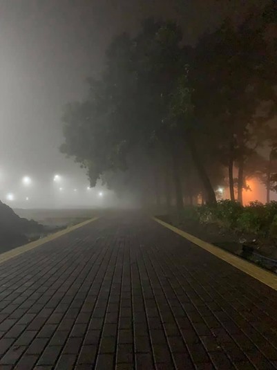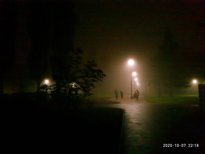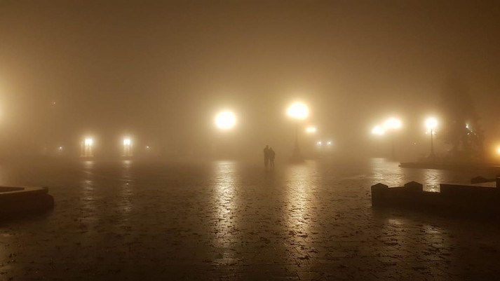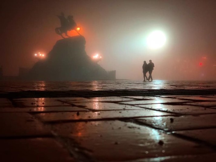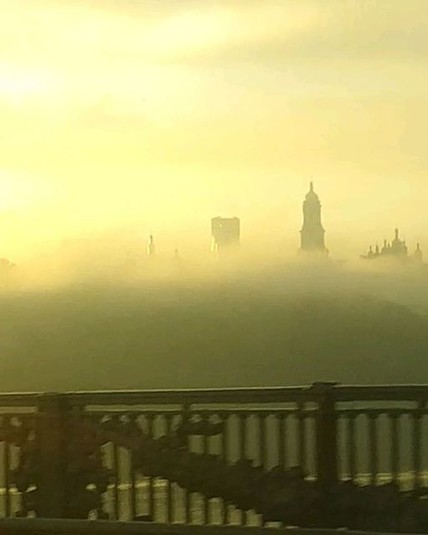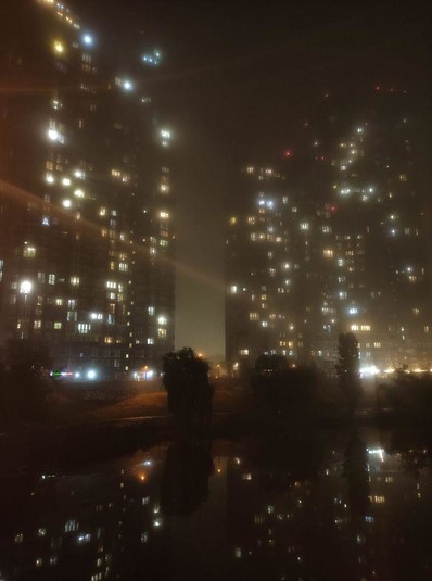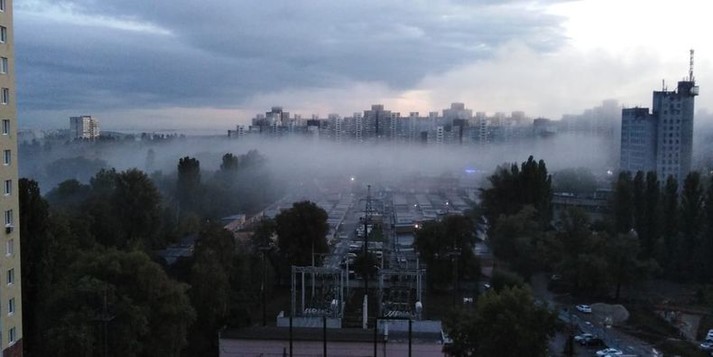 Жителі столиці активно діляться знімками вечірнього туманного міста в соціальних мережах.