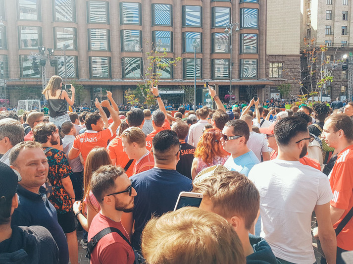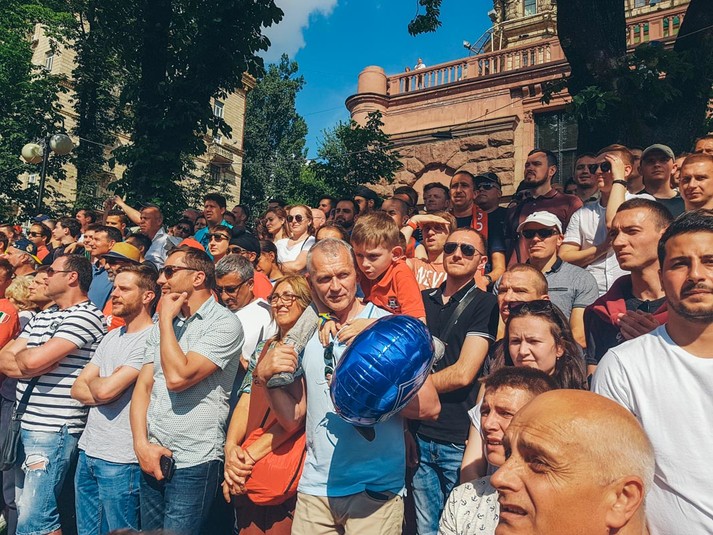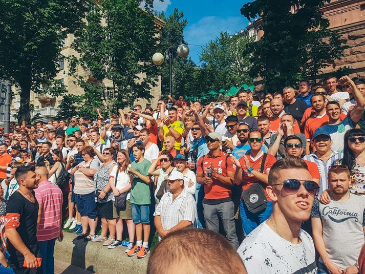 На легенд світового футболу прийшли подивитися тисячі глядачів. Фанати зайняли всі трибуни, місця навколо них, і навіть залізли на всі ліхтарні стовпи і клумби у окрузі.