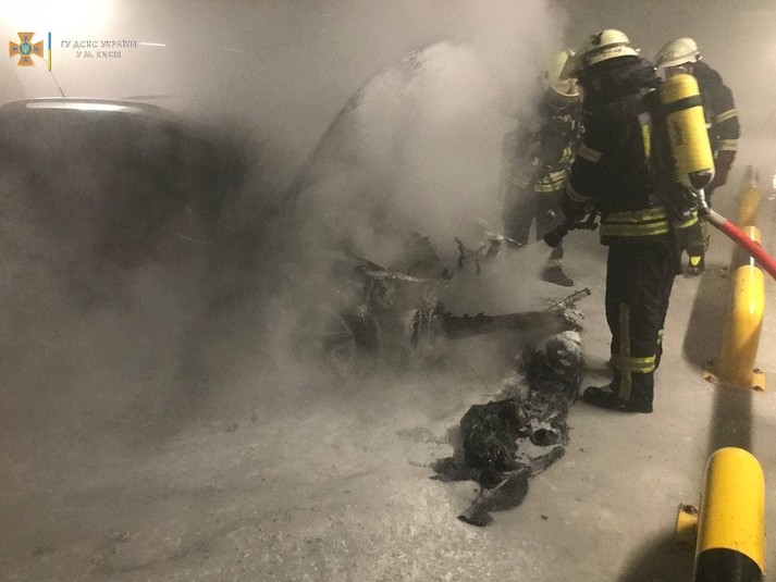У багаторівневому паркінгу в Києві сталась пожежа (фото)