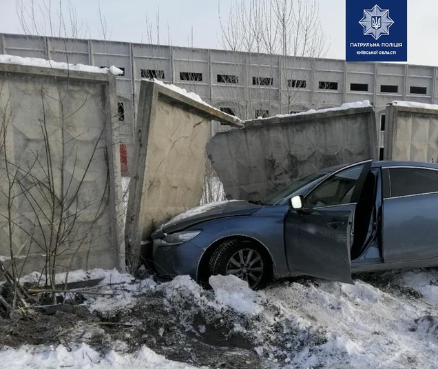 У Борисполі Mazda проломила бетонну огорожу (фото)