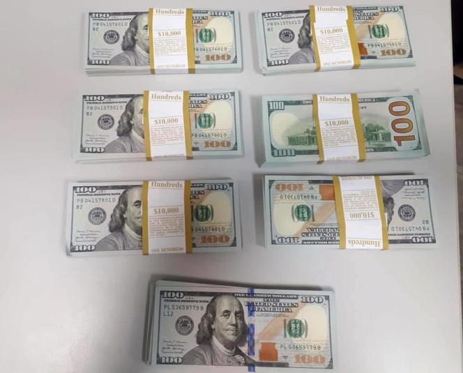 Валюта, купюрами по 100 доларів, переважно вся в банківських пачках по 10 тисяч доларів, знаходилась у різних відділеннях її сумочки, ручної поклажі та дорожньої валізи.