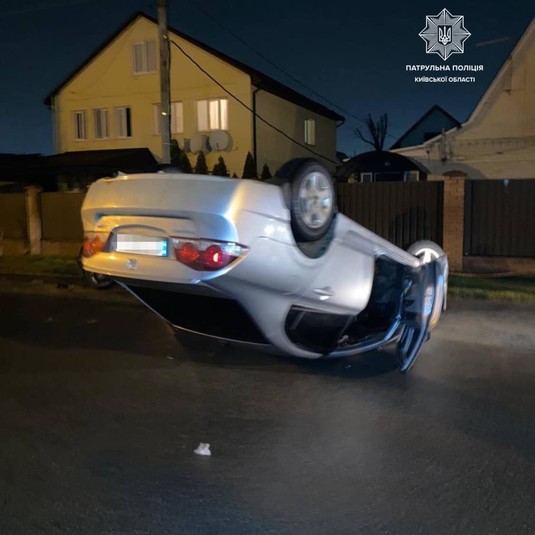 У Борисполі п’яна водійка влаштувала ДТП із перекиданням авто (фото)