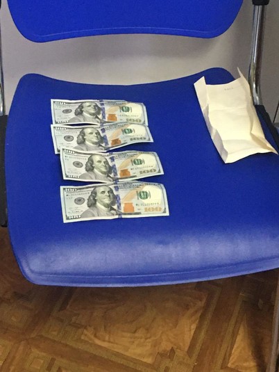 Під час бесіди начальника відділу прикордонного контролю штабу ОКПП «Київ» з жінкою, остання запропонувала 400 доларів США за пропуск в Україну її знайомого, громадянина Ірану. Гроші українка поклала у папку серед інших своїх документів.