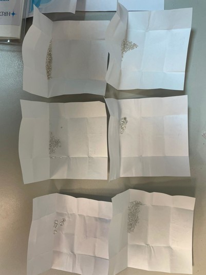 У речах 36-річного громадянина України правоохоронці виявили 9 каблучок з білого золота, оздоблених діамантами, один діамант жовтого кольору з сертифікатом «HRD» та 6 паперових згортків із діамантами різних розмірів та ваги.