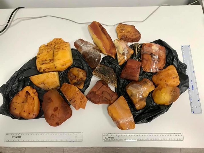 Серед речей подорожувальника правоохоронці виявили 18 необроблених каменів бурштину, рідкісних за своїми розмірами. Вага найбільшого каменя сягала 700 грамів, а його довжина – 18 см.