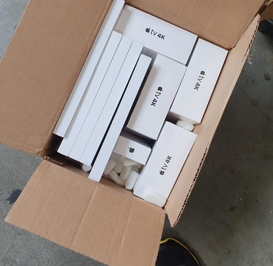 На території вантажного терміналу вилучено значну партію брендових електронних товарів і 28 ящиків кальянного тютюну