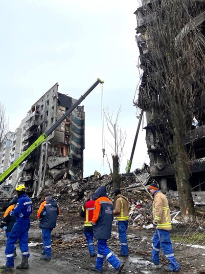 Рятувальники ДСНС України разом із волонтерами виконують титанічну роботу з розбору завалів та пошуку людей в Бородянці. Про це повідомляє МВС України.