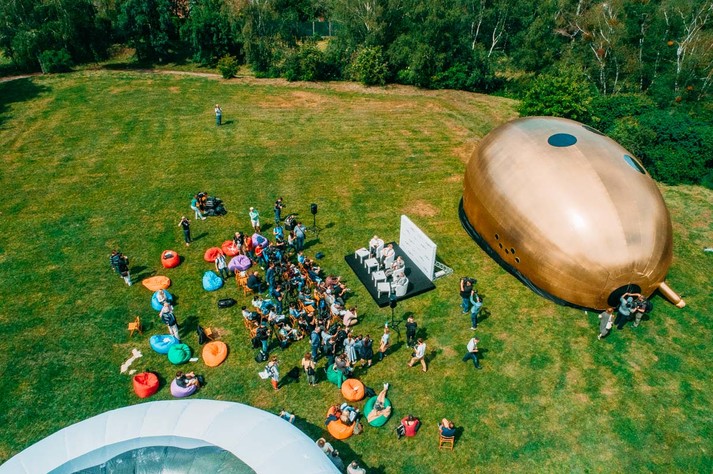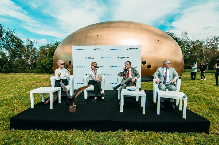 Всі бажаючі зможуть відвідати «Парк корупції» вже 1 червня, а поки організатори познайомили журналістів з цієї незвичайною виставкою. Найбільшу увагу привертає величезний 100-метровий надувний золотий батон. Він також є шатром, в якому незабаром будуть встановлені різні інсталяції та експонати, повідомляє Інформатор.