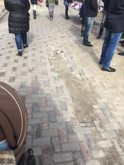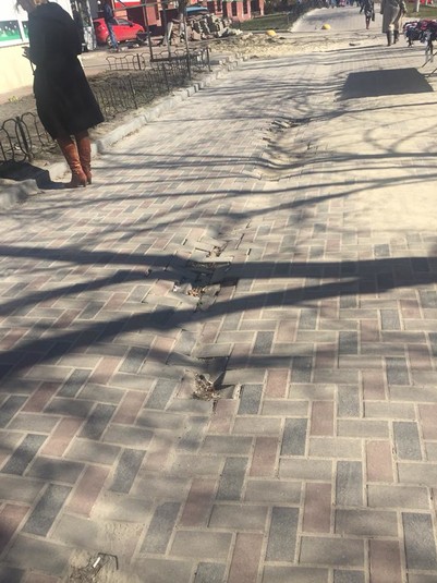 Жителі міста скаржаться, що плитка провалюється просто під ногами. Траплялися навіть випадки травмування пішоходів.
