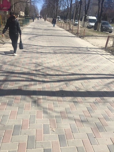 Плитка поклали в кінці 2017 року. Роботи велися навіть тоді, коли випав великий сніг. «Майстри» просто розчищали тротуар від снігу і клали плитку.