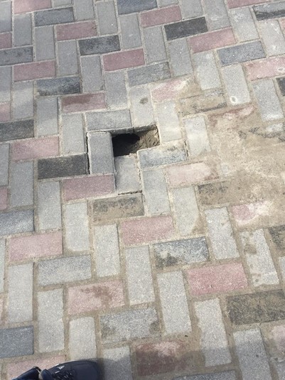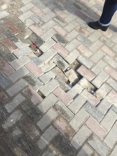 Жителі міста скаржаться, що плитка провалюється просто під ногами.