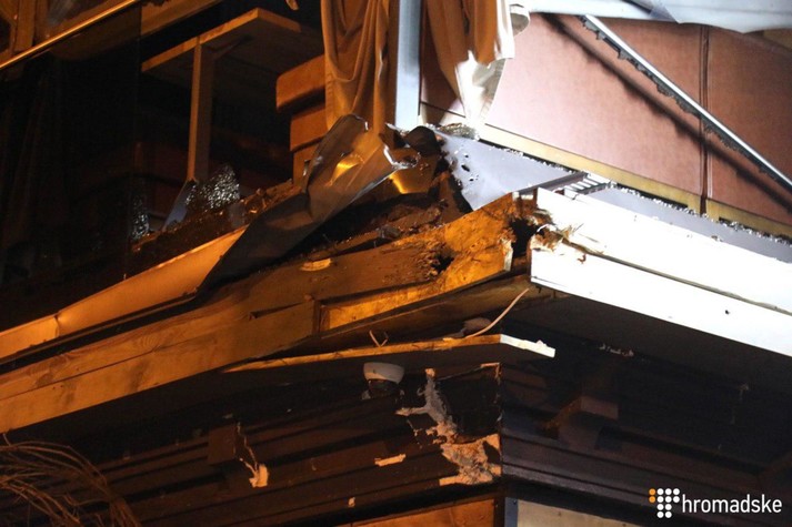Невідомі поцілили у відділ продажів «Київміськбуду», там, зокрема, виявили хвостовик снаряду.