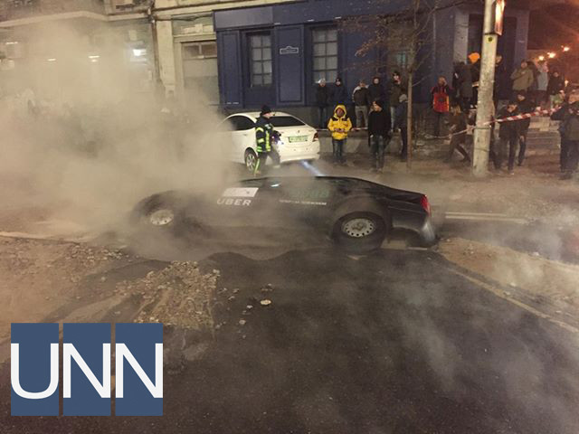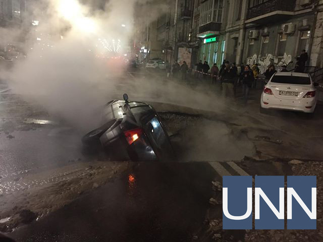 Внаслідок прориву тепломережі біля станції метро «Олімпійська» у Києві провалилася під асфальт автівка. Постраждалих немає.