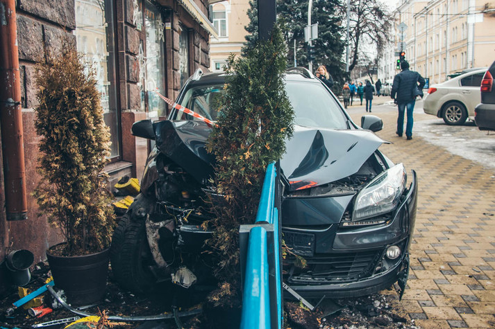 За словами свідків, Renault рухався по вулиці Льва Толстого в бік площі Льва Толстого. На перехресті з вулицею Володимирською «француза» підрізав Audi, який повертав з Льва Толстого наліво на Володимирську. Щоб уникнути зіткнення, водій Megane вирулив на тротуар і, знісши клумби і декорації, влетів в терасу ресторану Pastatecа. Водій Audi зник з місця події.