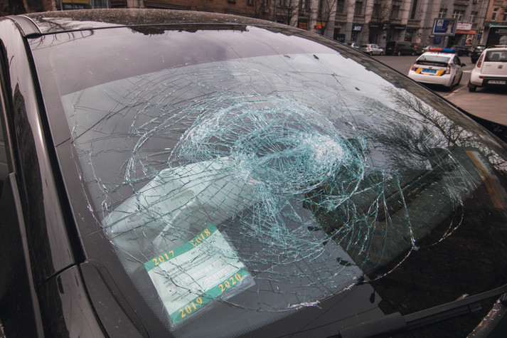 Чорний Renault пошкоджений збоку і має тріщини на лобовому склі, у білого «француза» злегка вм'ятий перед.