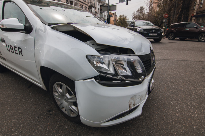 Чорний Renault рухався в правому ряду з вулиці Жилянської в сторону Льва Толстого на зелене світло світлофора, який тільки загорівся. Авто переїжджало перехрестя і, як висловилася водій чорного «француза», вони зустрілися з Uber.