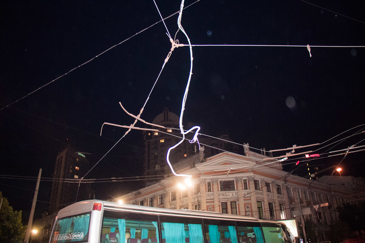 Автобус зачепив розтяжку контактної мережі, яка раніше була обірвана