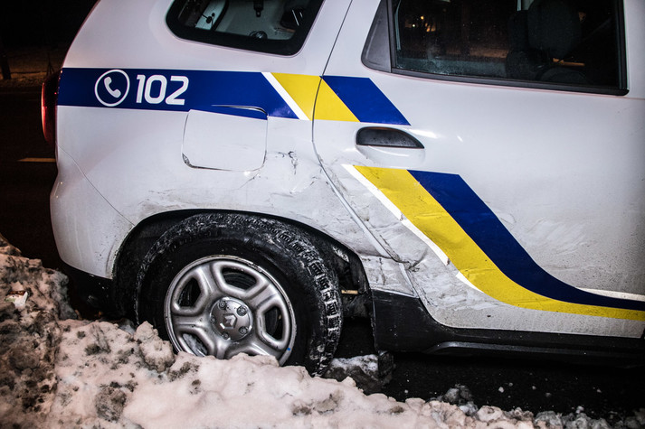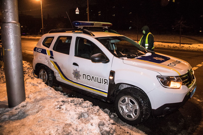 У ніч на середу, 9 січня, в центрі Києва зіткнулися седан Renault служби Uber і поліцейський Renault Duster. ДТП сталася на перетині вулиць Велика Васильківська та Ковпака.