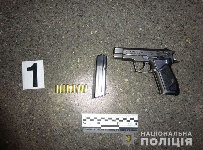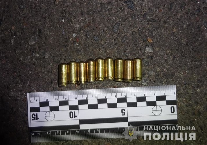 На місці події, де пролунали постріли, правоохоронці виявили пістолет, попередньо – травматичний, та дев’ять патронів до нього. Окрім цього, при огляді автівки, у якій перебували фігуранти, правоохоронці вилучили одну стріляну гільзу і дві бити.