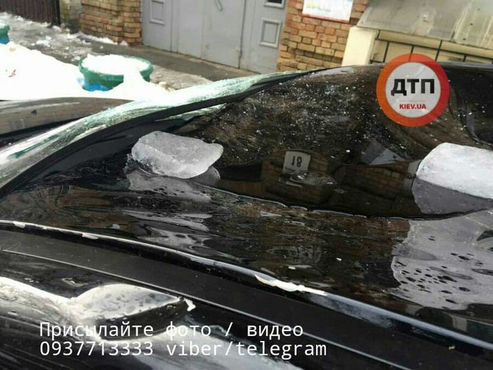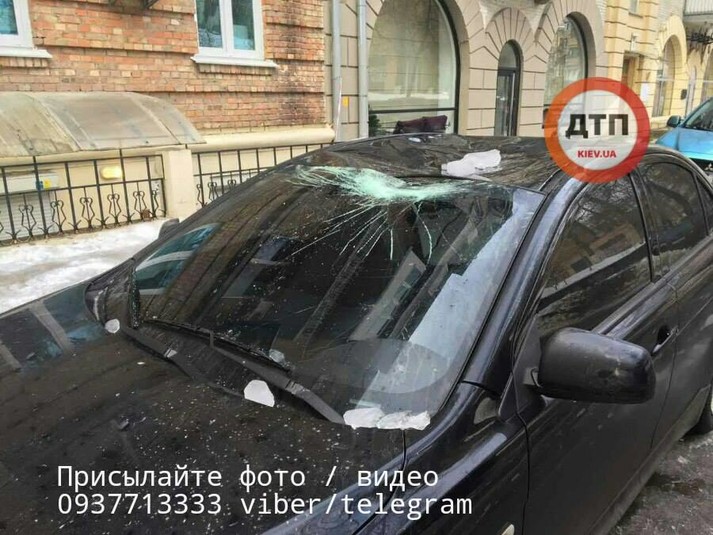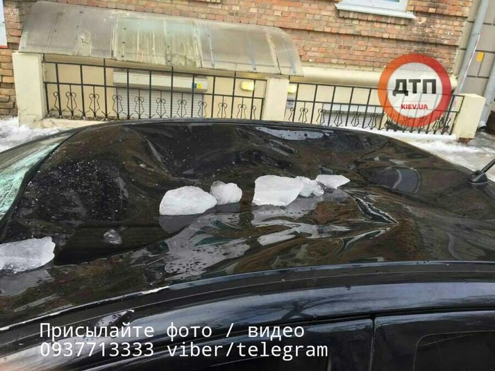 Надзвичайна подія сталася вдень у неділю, 19 лютого 2017 року. У центрі столи, на вулиці Кропивницького, 18, крижана брила пошкодила іномарку