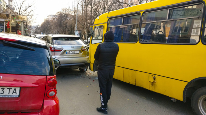 У четвер, 28 лютого, в Києві на перетині вулиць Льва Толстого і Володимирської сталася аварія за участю легкового автомобіля Lexus RX300 і маршрутного таксі №189. У момент зіткнення в маршрутці перебували пасажири.