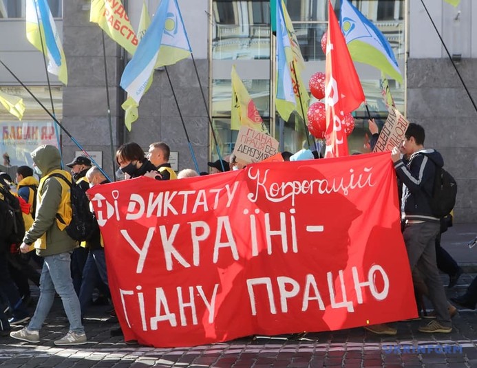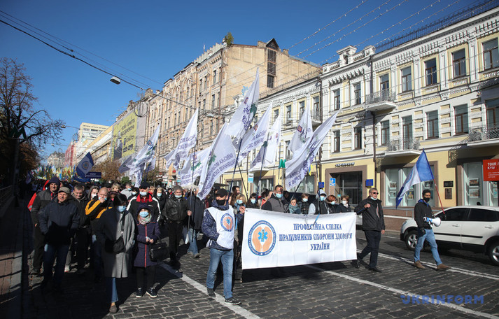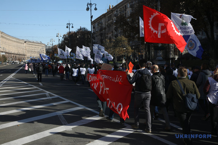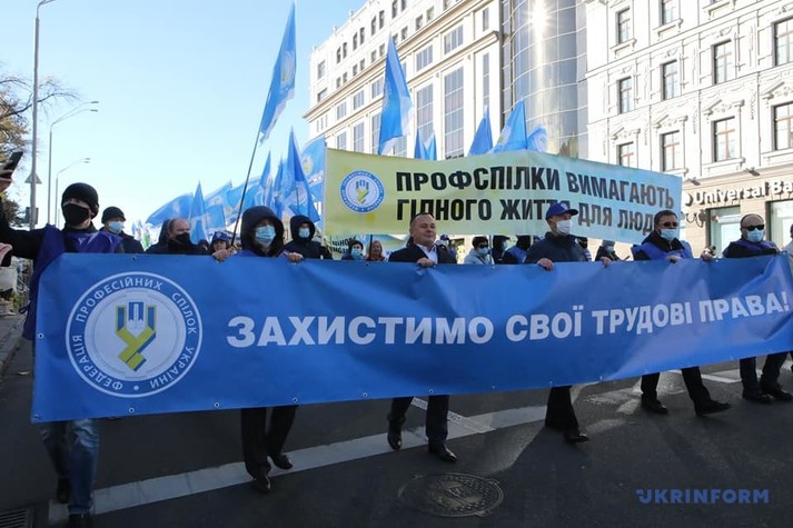 У четвер, 7 жовтня, представники Федерації профспілок України вийшли на акцію протесту в Києві. Майже 10 тисяч людей зібралися вранці під червоним корпусом Київського національного університету ім. Шевченка, повідомляє Укрінформ.