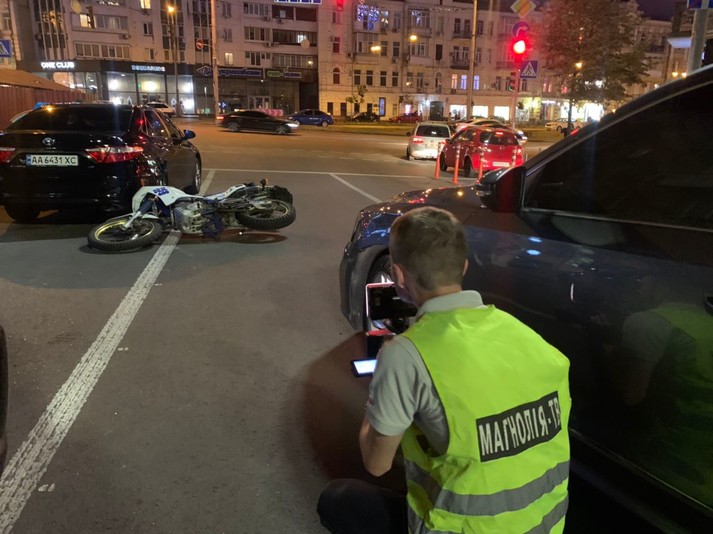 У центрі Києва мотоцикл протаранив два автомобілі (фото, відео)