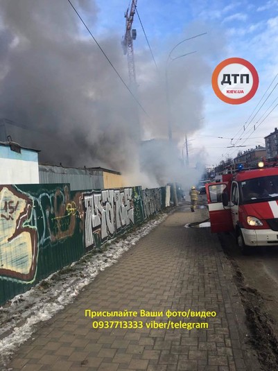 Як повідомляє кореспондент «Главкома», загорання сталося на будівництві навпроти супермаркету «Новус». Густий чорний дим від пожежі розповсюджується по Печерську.