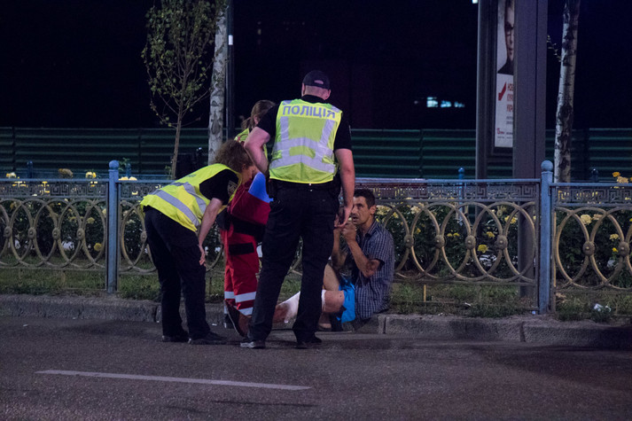 Близько 23:20 на бульварі Лесі Українки Opel Vivaro їхав в сторону Печерська. У цей момент по проїжджій частині йшов чоловік близько 40 років, який був, на думку автомобіліста, в нетверезому стані. Про це Інформатору розповів водій Opel. Пішохід хитнувся в бік авто і Opel, щоб уникнути зіткнення, повернув вправо і врізався в Volkswagen Polo, який рухався по бульвару в тому ж напрямку. Однак горе-пішохода Opel все-таки вдарив лівою стороною і повалив на асфальт.