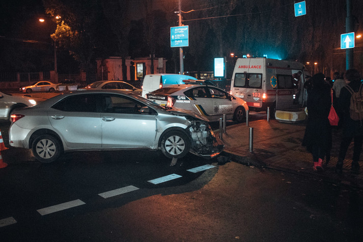 Corolla прямувала по бульвару Тараса Шевченка в бік площі Перемоги. А Camry перетинала бульвар, щоб поїхати по вулиці Леонтовича в сторону Богдана Хмельницького. У цей момент сталося зіткнення.