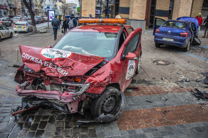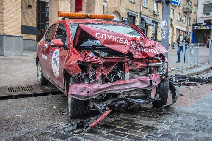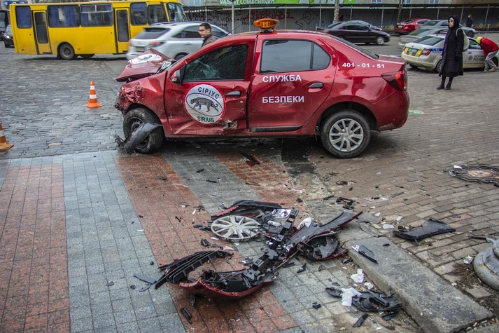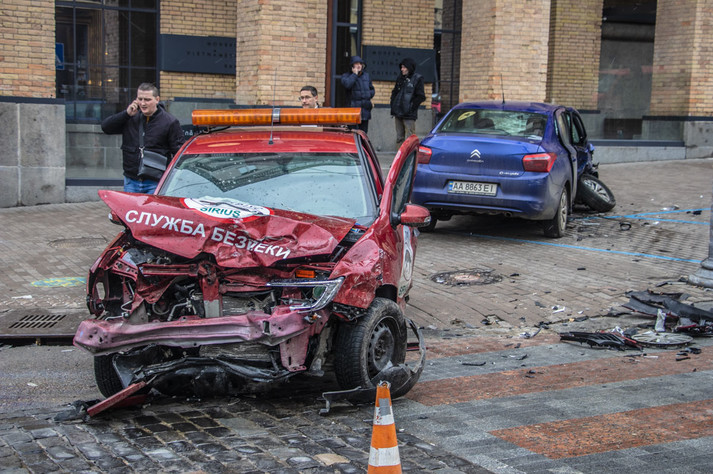 У середу, 27 лютого, на перетині вулиць Велика Васильківська та Саксаганського сталася ДТП за участю автомобілів Renault Logan і Citroen C-Elysee. Renault належить службі безпеки «Сіріус».