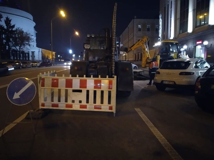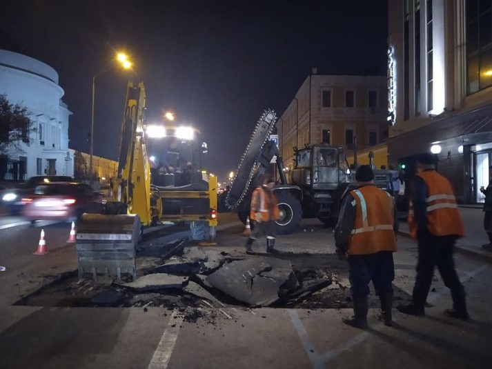 У четвер ввечері, 5 березня, на вулиці Володимирській, 52, у Києві прорвало трубопровід. Внаслідок цього виникло просідання асфальту.