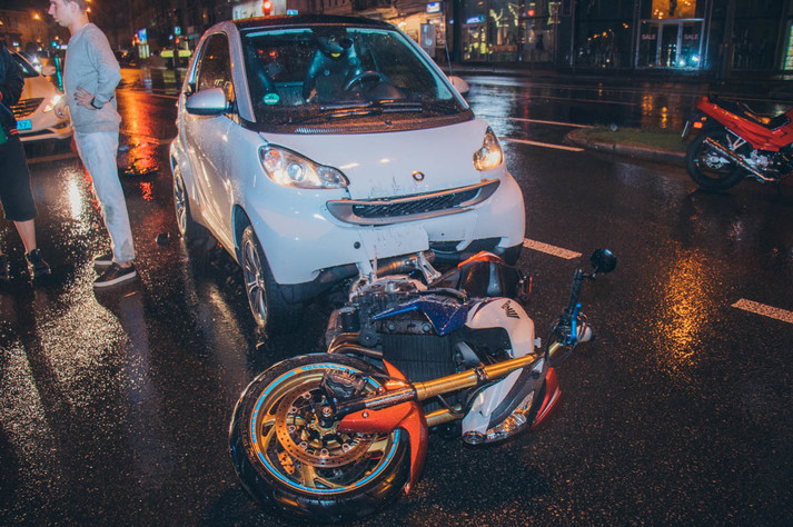 Як повідомив водій Smart, він стояв на перехресті, попереду його машини чоловік на мотоциклі Honda чекав на зелений сигнал світлофора. Коли загорілося зелене світло, пілот мотоцикла не встиг рушити. Чоловік на Smart не помітив цього і наїхав на нього ззаду.