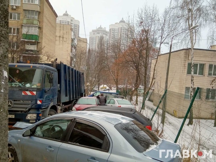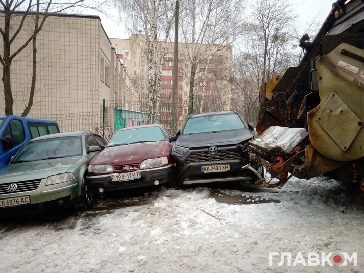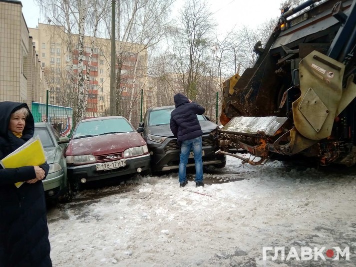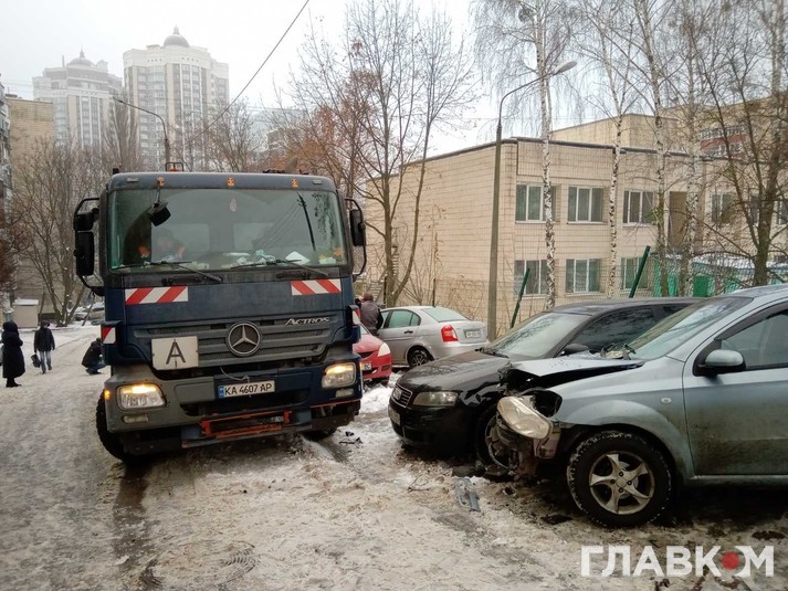 Так, на виїзді з вулиці Трудової на Лук’янівську сміттєвоз почав сповзати вниз і протаранив автомобілі, припарковані на узбіччі.