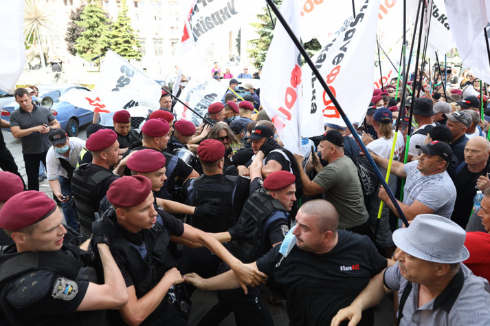 Протестувальники зібралися пройтися маршем до Офісу президента і Верховної Ради із труною і ритуальними вінками, як «символами похорону малого бізнесу». Однак на їх шляху встали поліцейські.