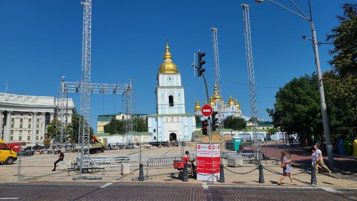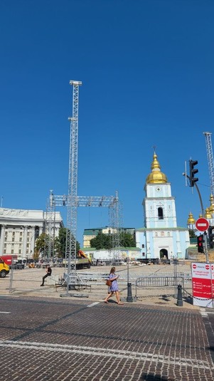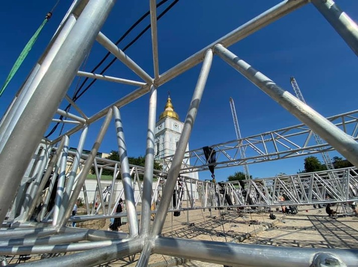 На Михайлівській площі в центрі Києва триває монтаж конструкцій та обладнання для проведення фестивалю «Ковчег «Україна»: десять століть української музики». Роботи триватимуть до 22:00 18 серпня.