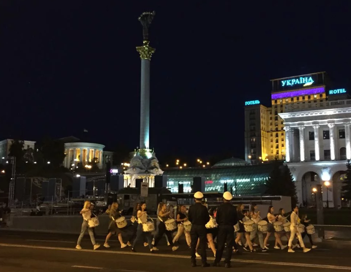 У четвер ввечері, 22 серпня, в Києві на Хрещатику проходить репетиція Ходи гідності, яка має відбутися на День незалежності 24 серпня.