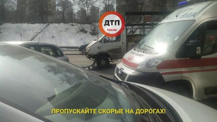 У центрі Києва вантажівка протаранила легковик: є постраждалі