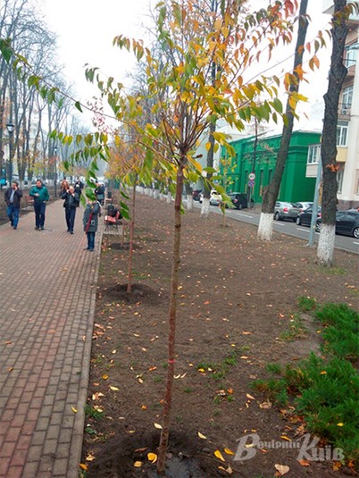 Сакури ж висадили з внутрішньої сторони бульвару, каштани залишили з зовнішньої.