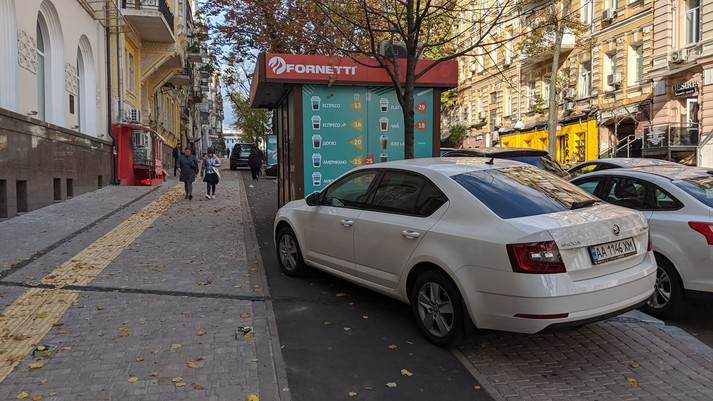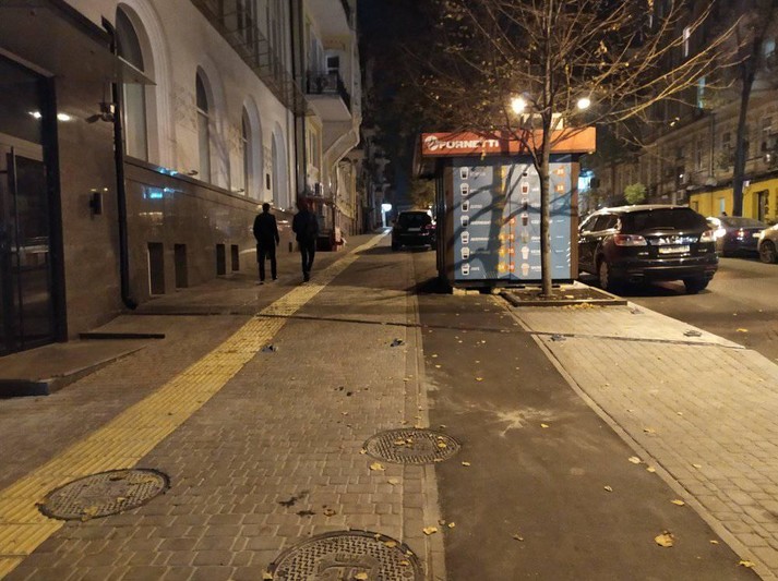 У центрі Києва, на вулиці Пушкінській, 14, підприємці встановили кіоск з продажу кави прямо на велосипедній доріжці.