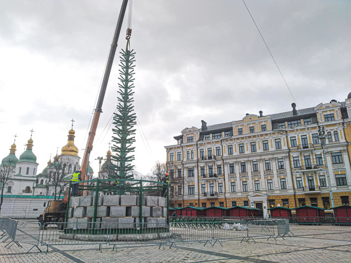 Монтаж новорічної ялинки на Софійській площі розпочався 26 листопада