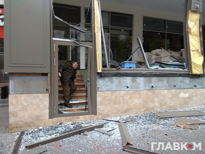 У центрі Києва за лічені хвилини невідомі рознесли меблевий магазин (фото, відео)