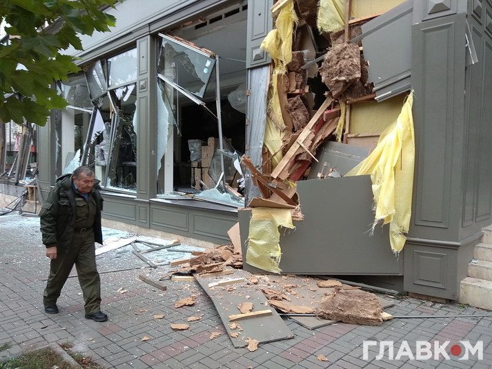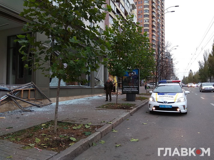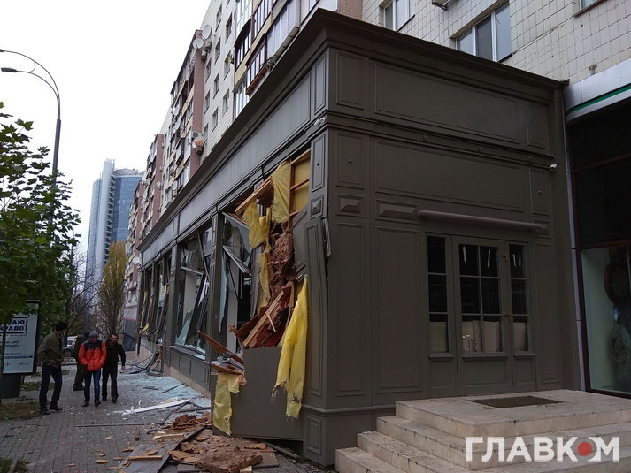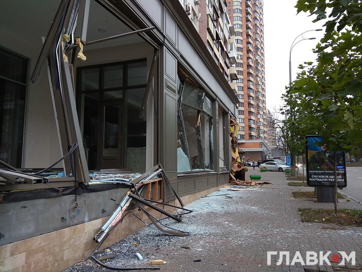 Сьогодні вранці, 8 листопада, на бульварі Лесі Українки, 5, в центрі Києва невідомі за лічені хвилини зруйнували будівлю меблевого магазину. Про це повідомляє кореспондент «Главкома», який став свідком події.