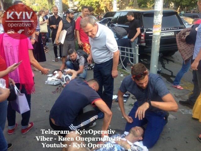 До прибуття медиків очевидці надавали першу допомогу постраждалим пішоходам. Попередньо, постраждали щонайменше чотири людини, двоє з них у важкому стані. На місці продовжують працювати правоохоронці. Подробиці аварії з'ясовуються.