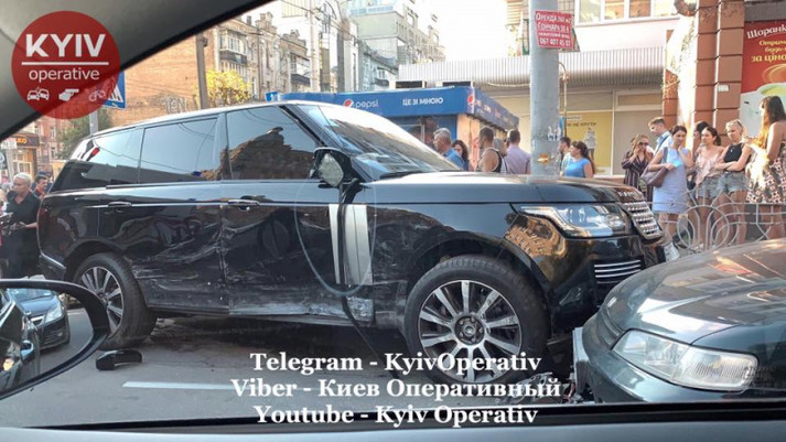 У центрі Києва зіткнулися Range Rover і Tesla: джип влетів у натовп пішоходів